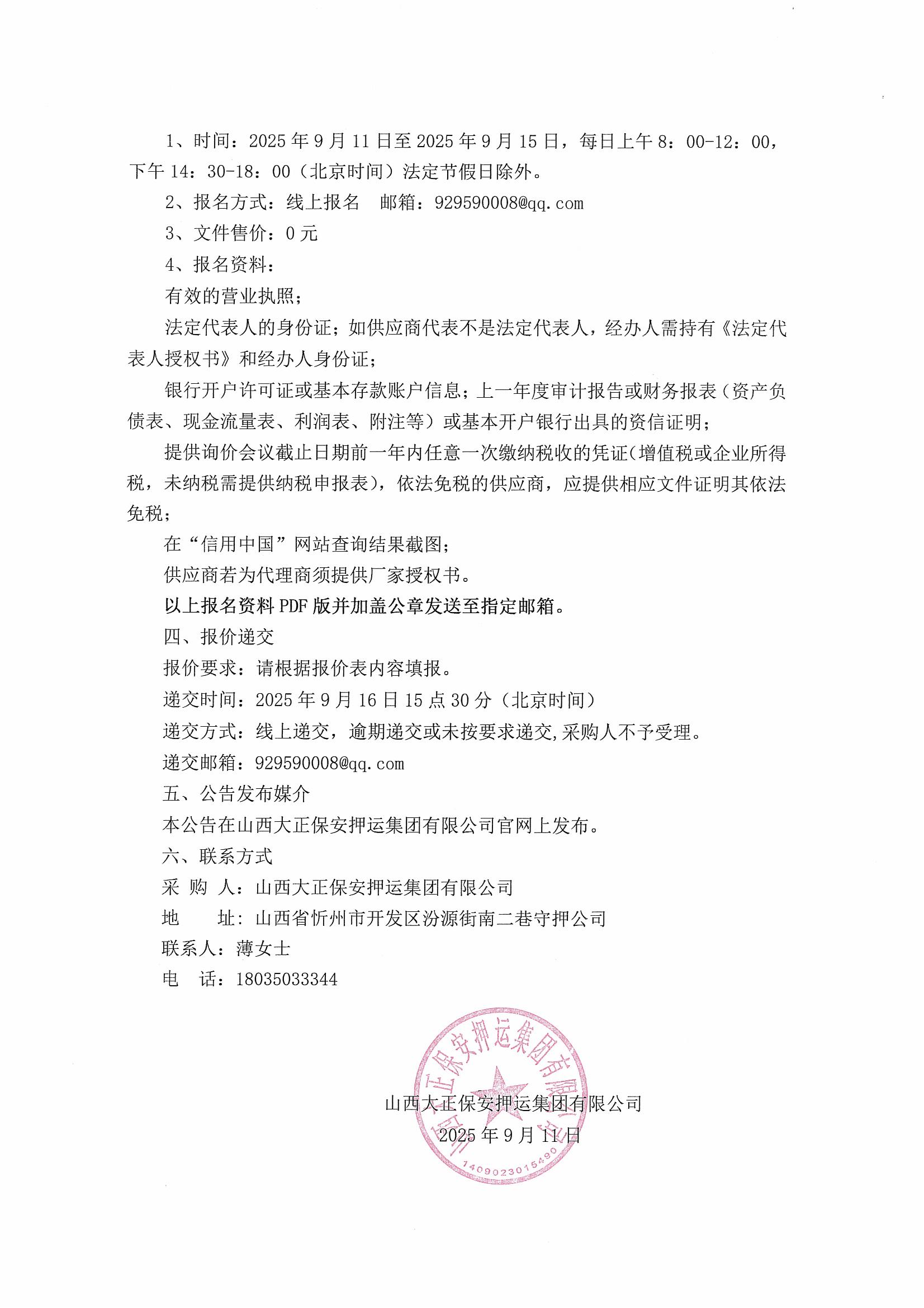 山西大正保安押運(yùn)集團(tuán)有限公司